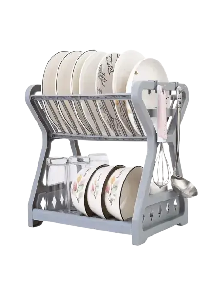 2 tier dish drying rack with cutlery hooks & cup holderDish Drying Rack with Cutlery Hooks & Cup Holder